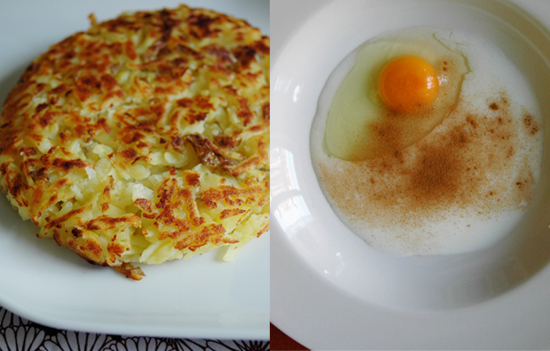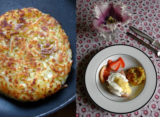 - 2. Than grate potatoes and fry them in a hot pan with a little butter until golden brown on the edges. Flip like a pancake onto the other side and repeat.
