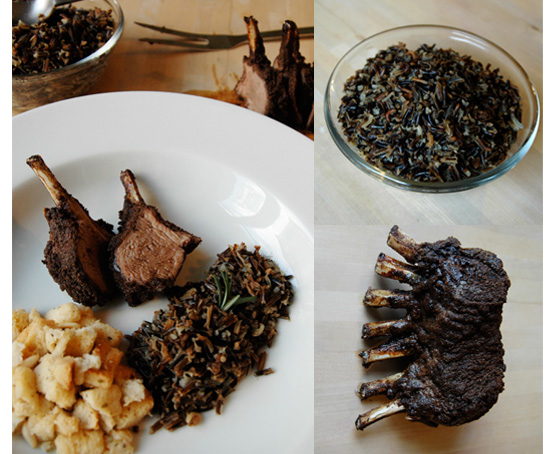 At our house, holiday family gatherings are small and non-traditional so finding the perfect menu can be a chore. We’re always looking for easy meals that won’t produce weeks worth of leftovers. Masala Rack of Lamb with Stuffing & Wildrice is a great choice for the holiday, topped off with the right amount of spice and ease.
