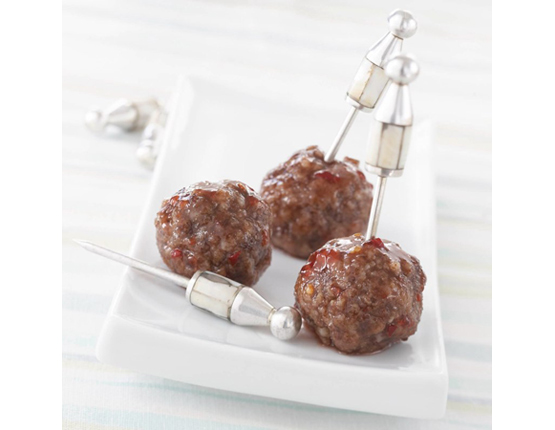 7. Skewer meatballs with a cocktail pick and serve warm.
