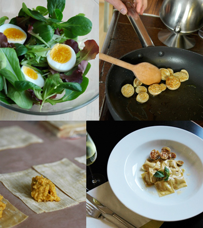 This Issue : Mint Butternut Squash Ravioli with Lemon Butter, White Eggplant and Salad with Sliced Egg = TOTAL 18.50CHF . Serves 4